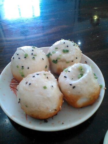 「焼き小籠包」こと「生煎包」。 「小籠包」と共に上海の名物ですが、桂林でも本格的なものが 食べられます。「蒸し上げる」小籠包に対し、大きな鍋で 「焼き上げる」ので、手間と時間がかかります。また、熟練した 職人さんでないと美味しいものは作れない…